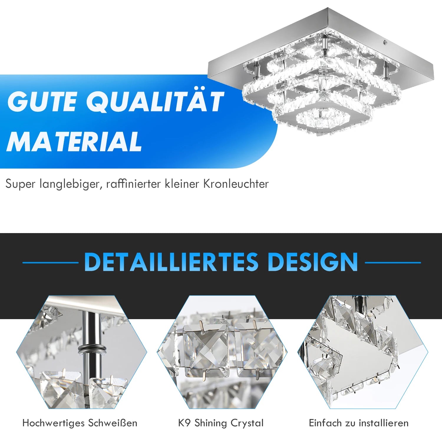 *Farbe der Leuchte: Kaltweiß 3000K; Material: Erstklassiges K9-Kristall und Metall.Finish: Pulverbeschichtung und Polieren
